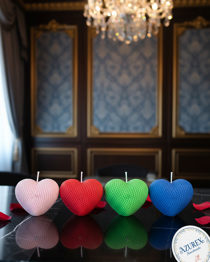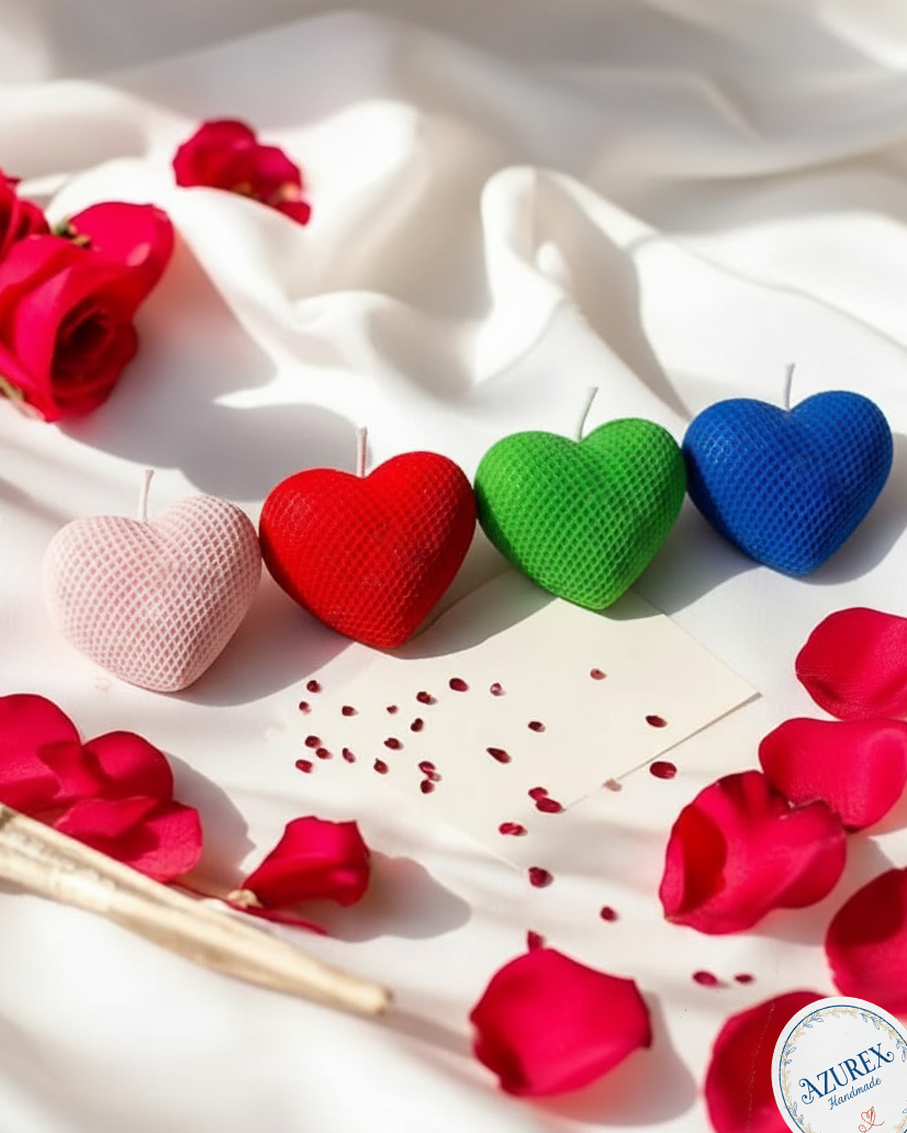 Heart shape candle with rose fragrance for home decor Candle (Red,bluegreen Baby pink Pack of 4)